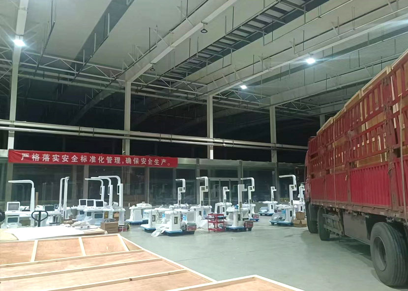 每一臺體檢機都由獨立大型木質(zhì)包裝箱嚴格密封,以此保證運輸過程中設備完好,順利抵達客戶端。夜間,工人們正在加班裝車搬運中....